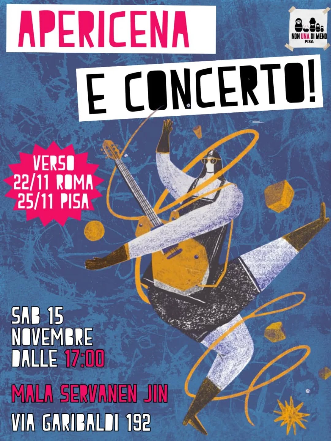 SABATO 15 NOVEMBRE dalle ore 17 alla Mala Servanen Jin, via Garibaldi 192 – Pisa