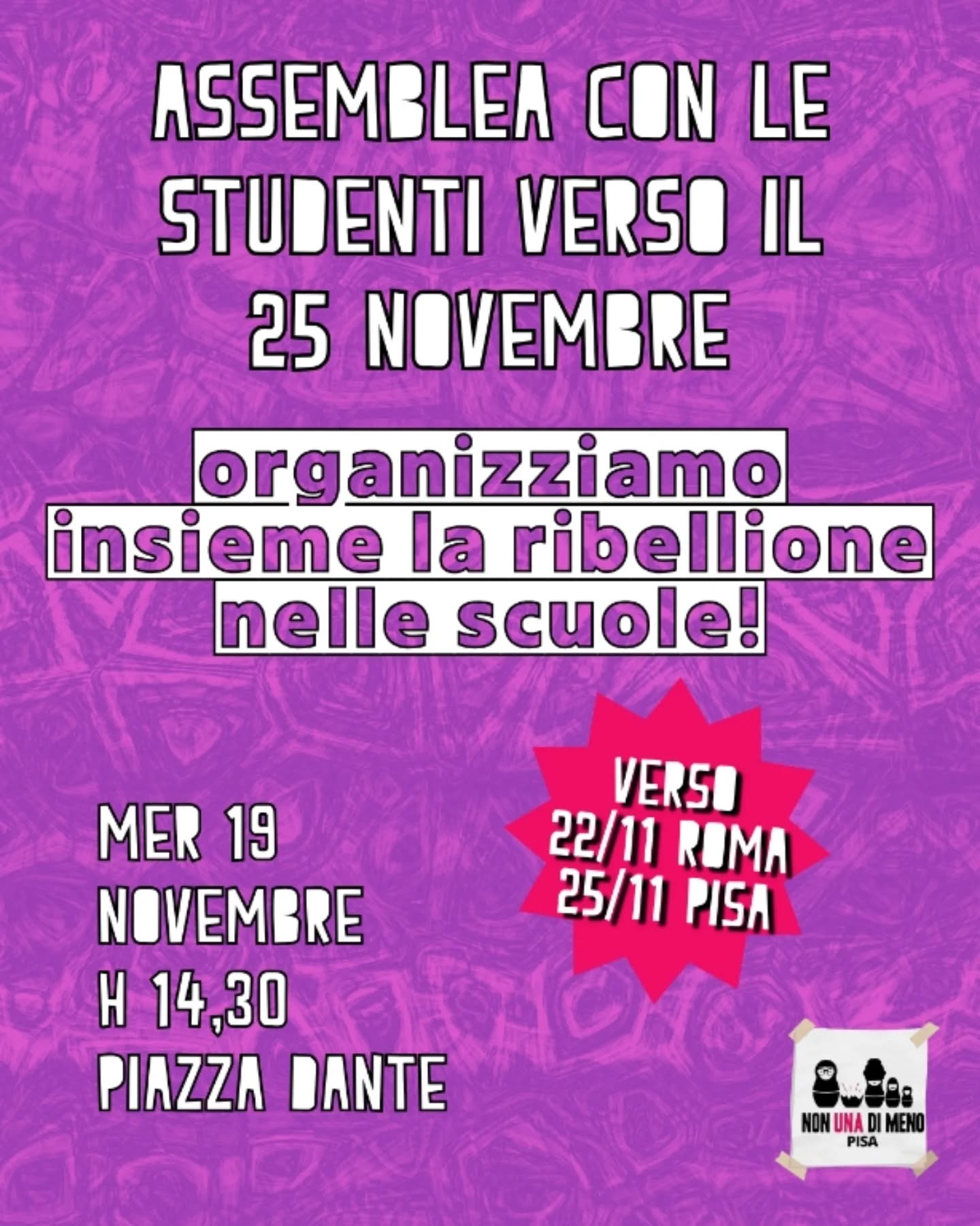 🗓️ 25 NOVEMBRE CORTEO CITTADINO A PISA ore 16.30 concentramento alla stazione centrale di Pisa