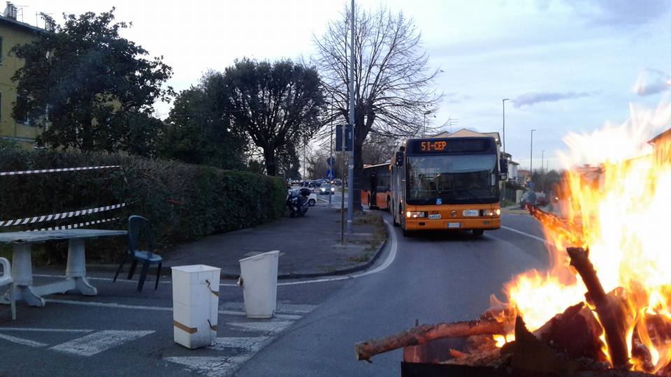 L’incontro si è chiuso con un nulla di fatto. Un’assemblea di quartiere che aspettava il ritorno della delegazione nella piazza di Sant’Ermete alla notizia dell’ennesimo nulla di fatto e delle accuse rivolte alle lotte degli abitanti ha deciso di occupare e bloccare la via Emilia. Seggiole, barricate, fuochi hanno interrotto la circolazione a partire dalle 16.30. “Ci dicono che non abbiamo motivo di protestare, che non contiamo nulla. Questa è l’arroganza del PD alla quale rispondiamo senza chinare la testa. Ci vengano loro a vivere in questa case di merda. Non riconosciamo più questa amministrazione come un interlocutore credibile. Si rubano i soldi pubblici con finti progetti di riqualificazione. Non si specula sulla gente. Continueremo con queste proteste fino a che non avremo risposte credibili da altri interlocutori istituzionali”. Mentre scriviamo, dopo quattro ore, la via Emilia è ancora bloccata.
